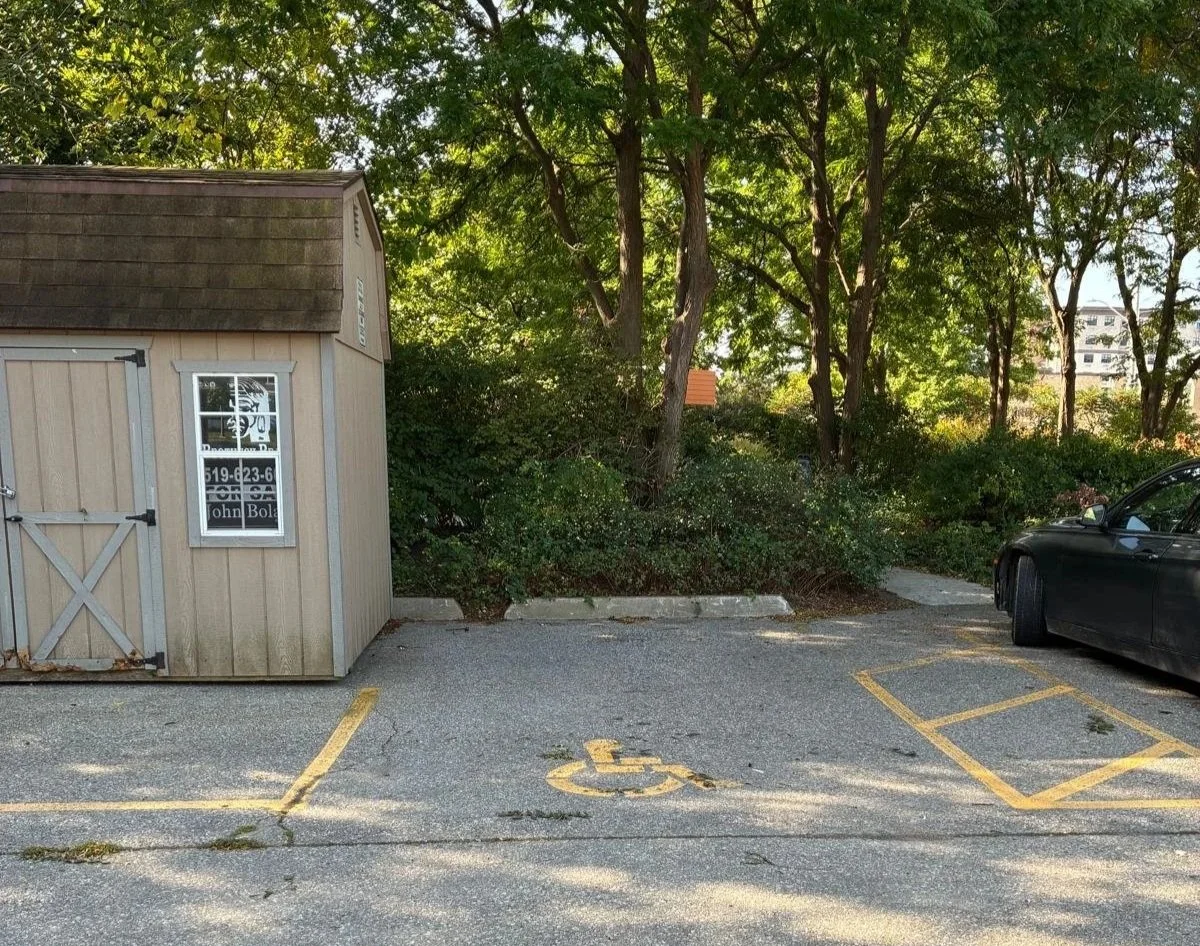 This is a shared parking lot for the Cambridge Sculpture Garden.